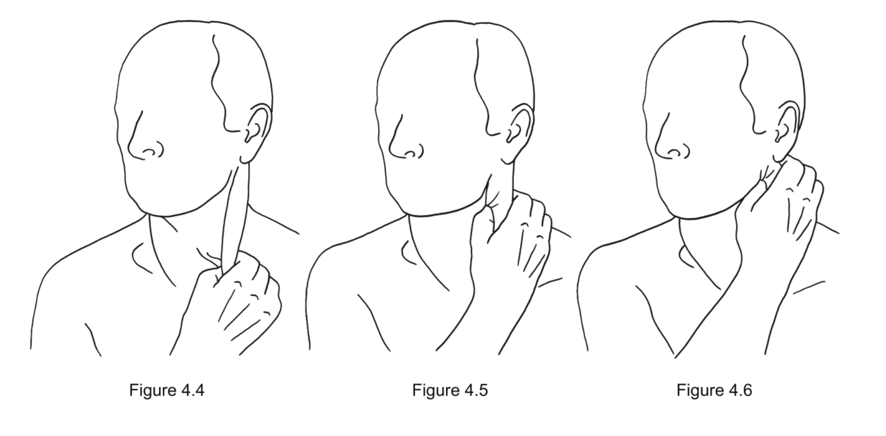 Massage the muscles in the front and side of the neck, being careful to avoid pulses and anything that feels weird. Do this throughout the day to relax these muscles.