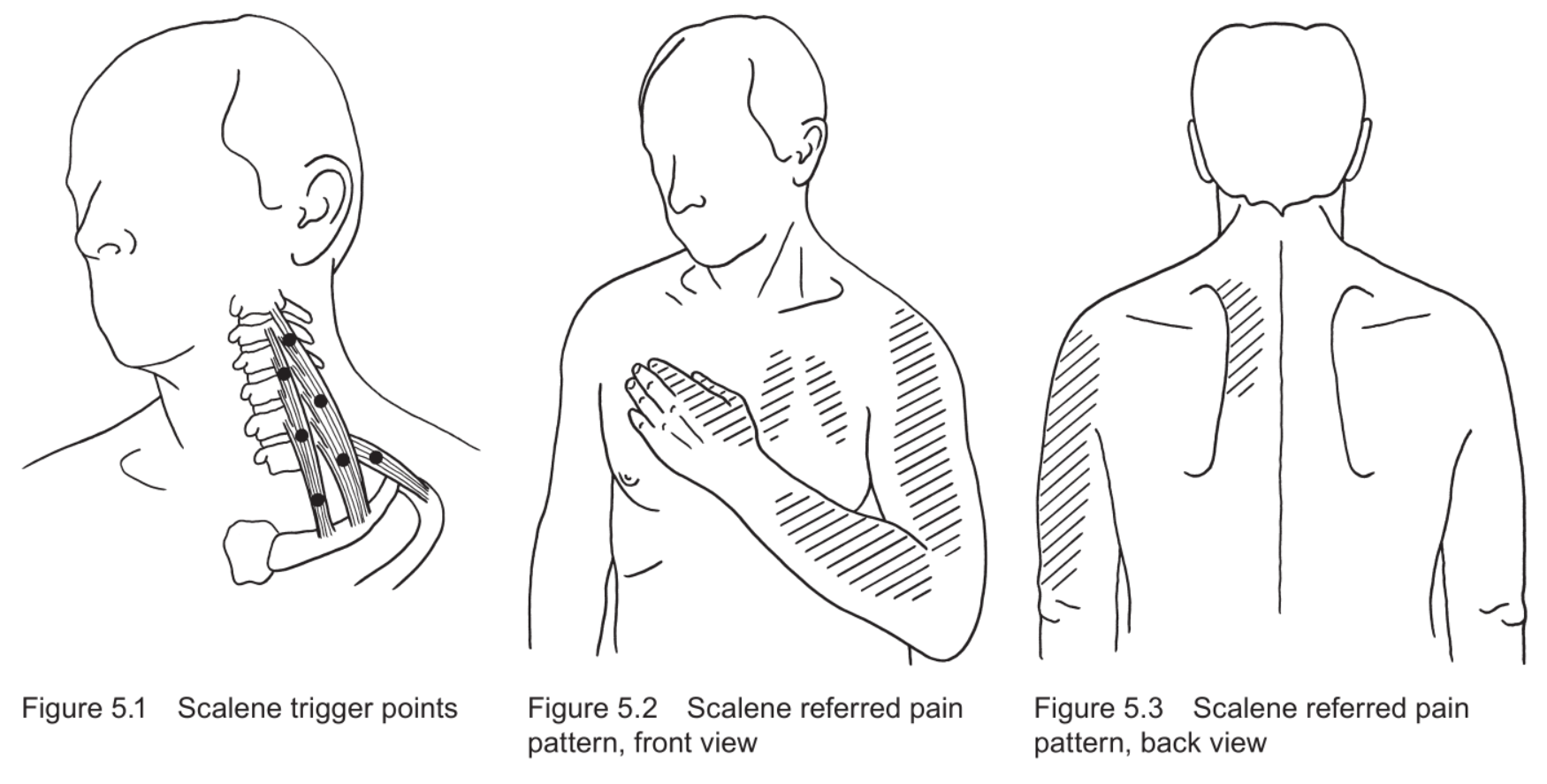 | Scalenes | numbness, tingling, weird sensations in chest, shoulder, arm, neck, and hand |